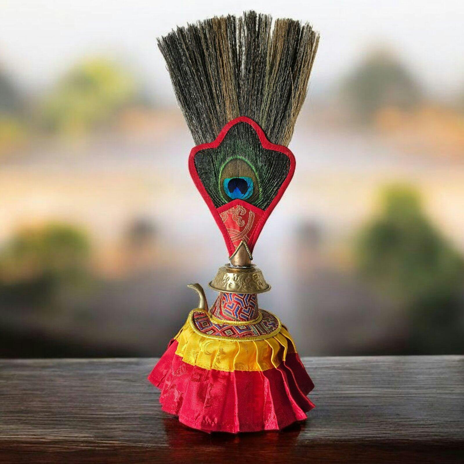 The bumpa skrit is an ornamental accessory for bhumpas (ritual water vessels) that enhances their spiritual and aesthetic presence. These decorative elements are placed around the top of the bhumpa to symbolize abundance, purity, and the sacred nature of the offerings it holds. The bumpa skrit is available in two beautiful styles: silk brocade and multicolor tassels, each contributing a unique energy to your ritual setup.