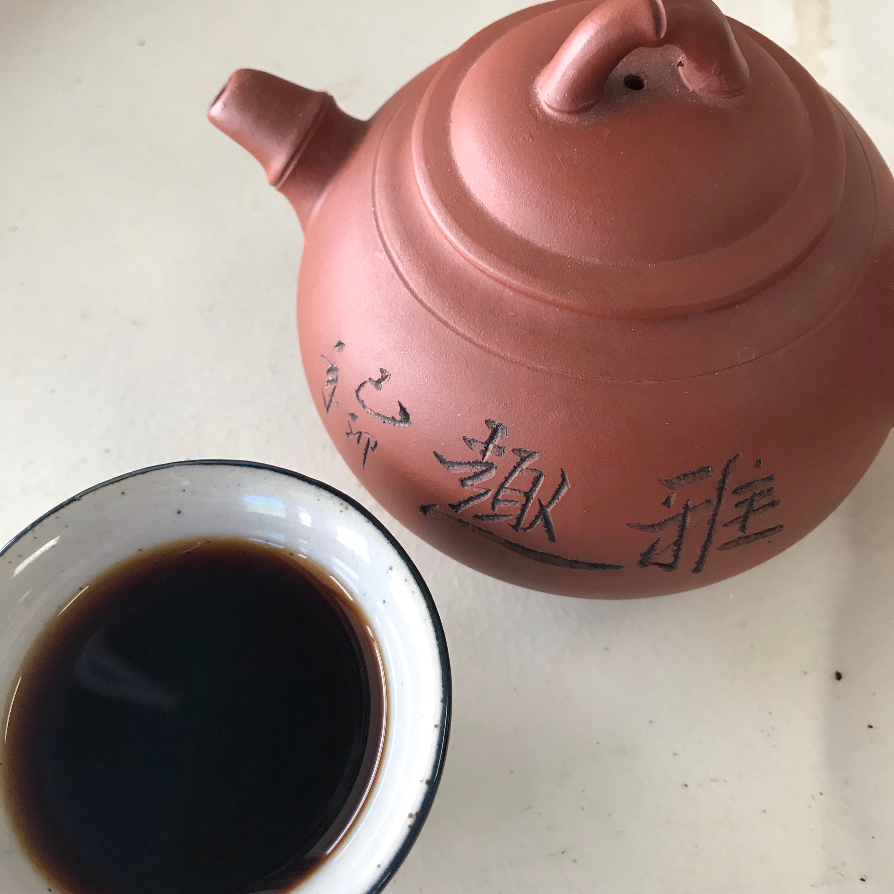 This ripe puerh tea from Yunnan province in one of the most coveted teas made by Langhe Tea Factory in the Menghai region. It’s a 9599 recipe from the year 2006 - yes... this tea is more than ten years old! Not many of this vintage of 9599 is available on the market anymore. We had to source this from Malaysia where puerh enthusiasts consider to be one of the prime locations for storing puerh teas. The brew is simultaneously dark and bright, very smooth texture, it has a nice hint of camphor, woody and leaves a wonderfully subtle, sweet aftertaste on your tongue.