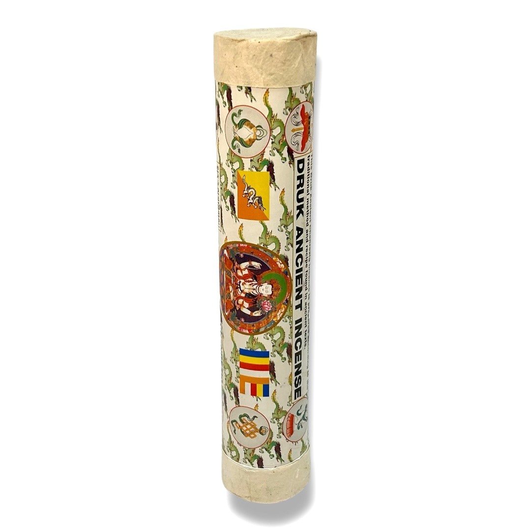 The Druk Ancient Chenrezig Incense is a Bhutanese incense crafted according to a traditional recipe found in ancient Buddhist texts. This incense blend is designed to bring happiness, good luck, peace, and prosperity into your life. Made with a combination of sacred ingredients, this incense serves as both a spiritual offering and a tool for cultivating positive energy and good fortune.