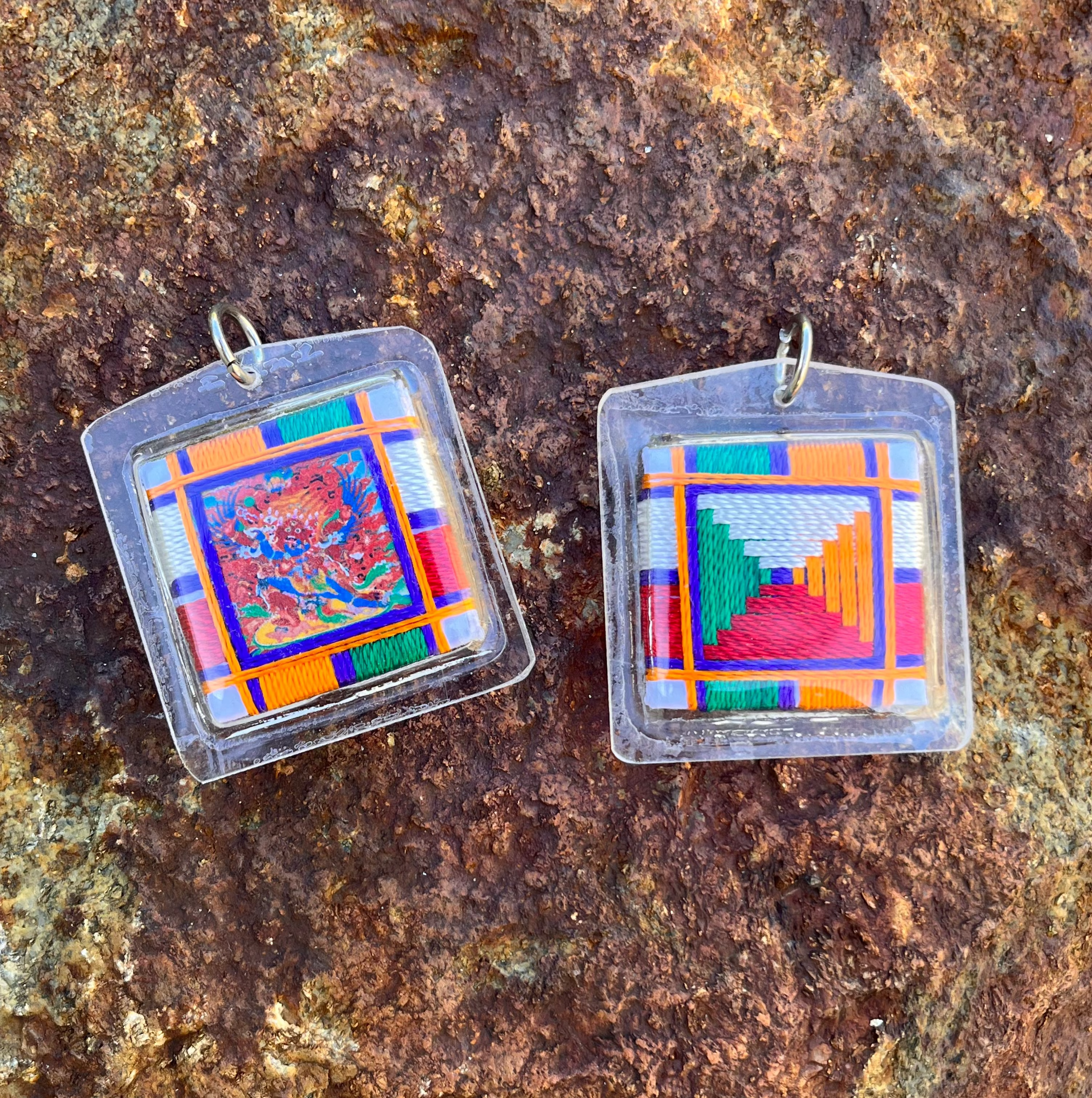 Sungkhors (lit. "protection-chakra") are protective charms/amulets that contain miniature mandalas of specific deities folded and covered with intricate handwoven colored string designs stipulated by vajrayana texts of the specific deities. Although all enlightened deities are perfect in their blessing qualities, each deity is often associated with a different enlightened quality.