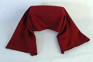 Known as “zen” in Tibetan, this is a single piece robe for the upper body, worn with one’s left shoulder covered and right bare. It is the most common upper robe worn on a daily basis by celibate monastics. Its use is however not exclusive to monastics as it is also used by some non-monastics but if you don’t carry celibate monastic vows, it is best you check with you lineage teachers whether this is appropriate for your use. There is quite a bit of variation across Tibetan Buddhist traditions with regards to how such burgundy/maroon zens are used.